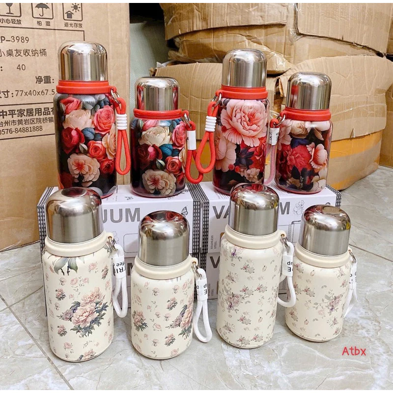 🔥 Bình giữ nhiệt Hoa 400/600ML có lưới lọc trà, bình giữ nhiệt nóng lạnh inox 316 có dây xách tiện lợi đang giảm giá!