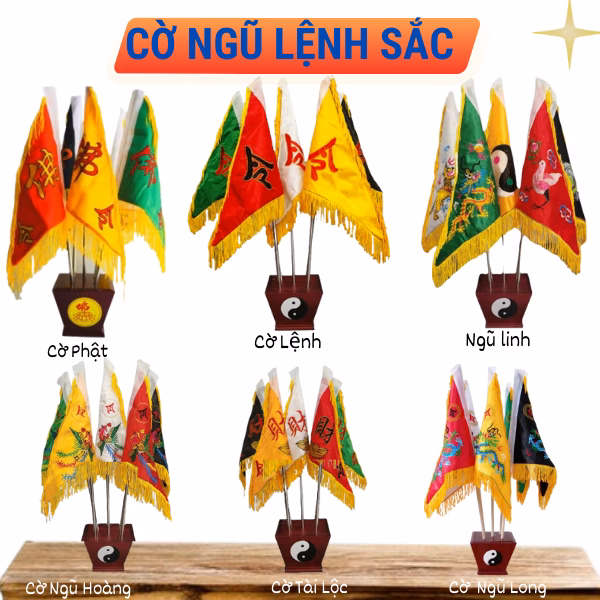🔥 Bộ 5 Lá Cờ Vải Ngũ Phương Gồm : Cờ Lệnh, Cờ Phật, Cờ Ngũ Long, Cờ Tứ Linh, Cờ Ngũ Phượng- Cờ Phật Giáo, Cờ Đạo Giáo Đẹp đang giảm giá!