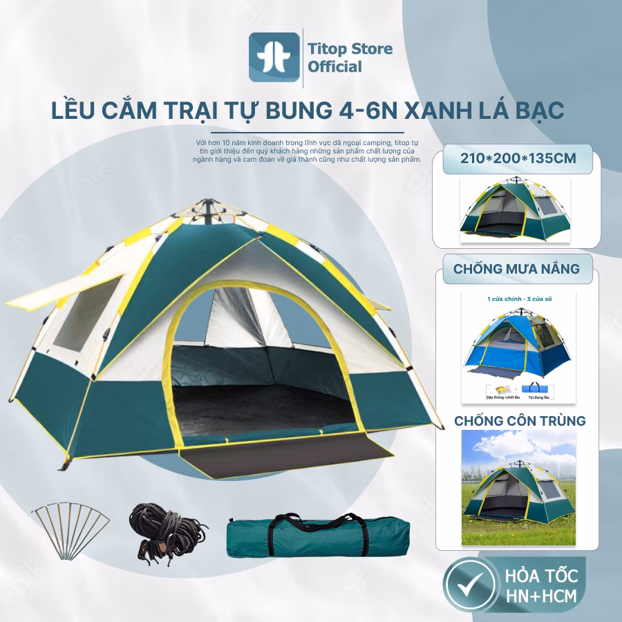 - Khả năng chống côn trùng: Lều cắm trại tự bung nên có khả năng chống côn trùng để bảo vệ người sử dụng khỏi các loại côn trùng có hại.