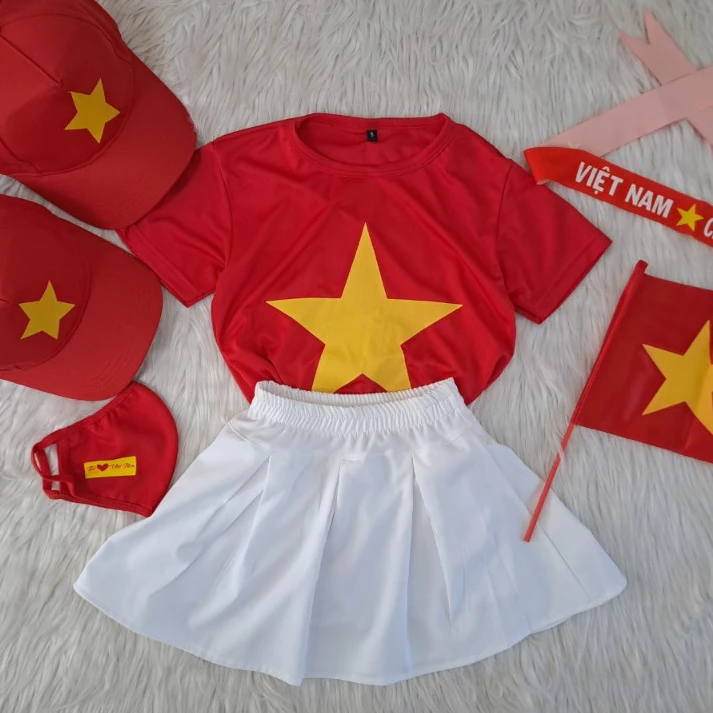 Phụ huynh có thể hướng dẫn trẻ em phối đồ với áo cờ đỏ một cách hợp lý. Áo cờ đỏ có thể kết hợp với quần hoặc váy trắng để tạo nên bộ trang phục ấn tượng và tinh tế.