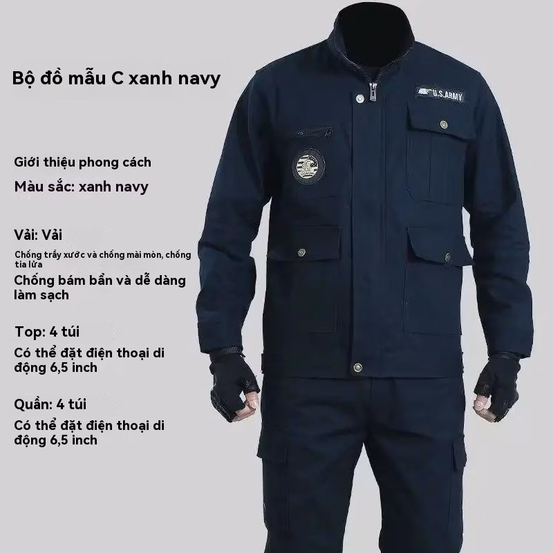 Bộ quần áo bảo hộ lao động xuân thu quần áo hàn điện nam xưởng công trường sửa chữa ô tô quân đội màu xanh lá cây bảo hộ là một sản phẩm như vậy. Sản phẩm này được thiết kế để phục vụ nhu cầu của các công nhân trong môi trường lao động nặng nhọc, từ các công trường xây dựng, xưởng sửa chữa ô tô, cho đến phục vụ trong quân đội.