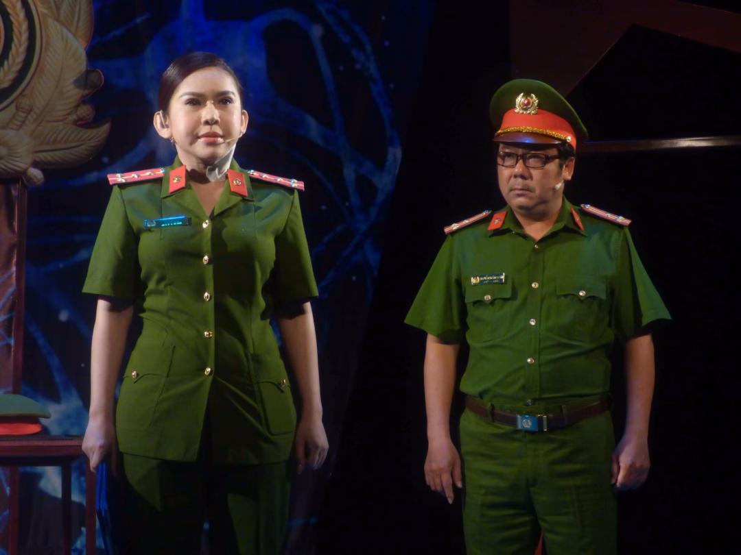 Không chỉ vậy, đạo diễn Quốc Thảo cũng chia sẻ về những khó khăn và lúng túng khi thể hiện các quy định, quy cách và tác phong của ngành công an trên sân khấu. Ông cho rằng việc thể hiện một cách chân thực và chính xác là điều không dễ dàng.